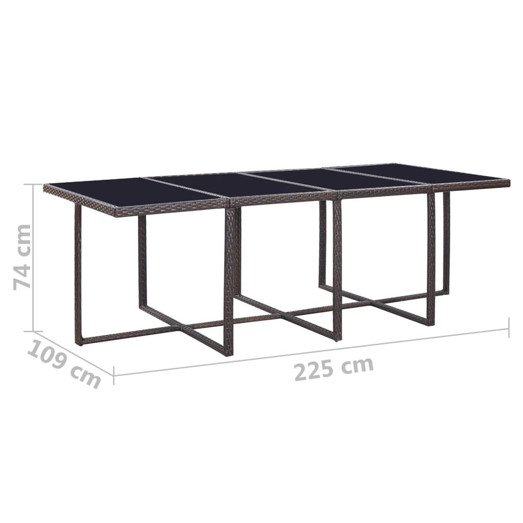 - Table dimensions: 225 x 109 x 74 cm (L x W x H)