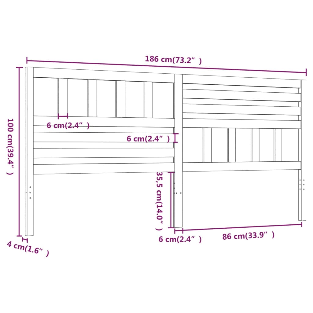 Bed Headboard 186x4x100 cm Solid Wood Pine