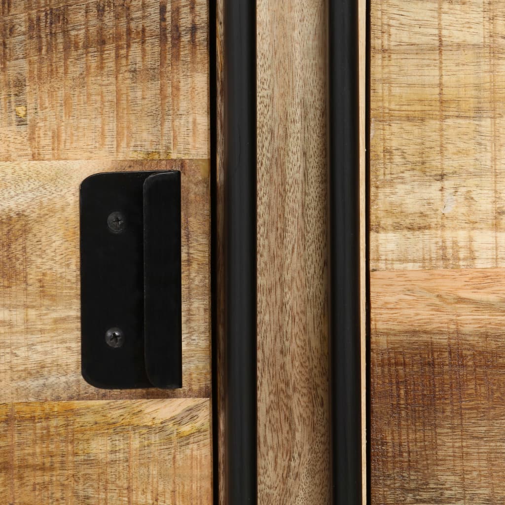 The sideboard is made of solid mango wood and is highly stable and durable. Mango wood is a strong and dense hardwood which has beautiful brown or golden streaks and contours on its surface. The sturdy top is ideal for placing some decorative items like vases or potted plants. The cabinet provides ample storage space for keeping various household items. The steel frames adds to the cabinet's industrial style. Great care has been taken at every step of the construction process, be it polishing, painting and lacquering. Assembly is easy.